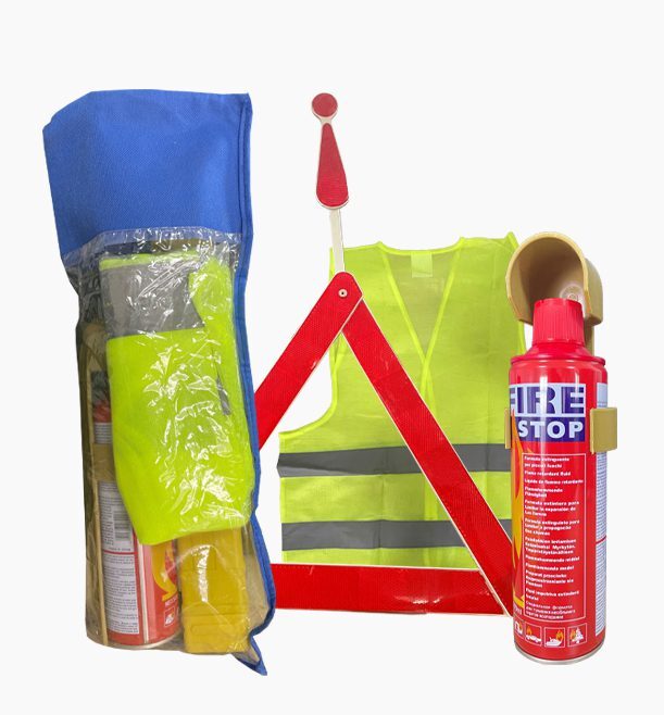 Pack de sécurité voiture, Triangle d’en panne, Gilet fluorescent, Extincteur poudre abc 1kg